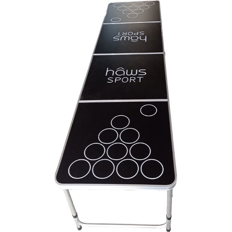 - Mål: Standardmålene for et beer pong bord er 244 cm i længden og 61 cm i bredden. Dog kan du tilpasse dimensionerne for at passe til dit rum.