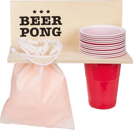 - Kopper: Der anvendes typisk 20 kopper i et spil, 10 på hver side af bordet. Kopperne er ofte lavet af holdbar plastik og er røde eller blå. Der findes specielle beer pong kopper med præcis den rigtige størrelse og form til spillet.
